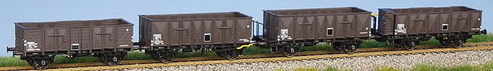 Set of 4 Freight cars consists from Gondola car type TTuwf9, gondola car type TTwf29, and 2 gondola cars type TTuw29