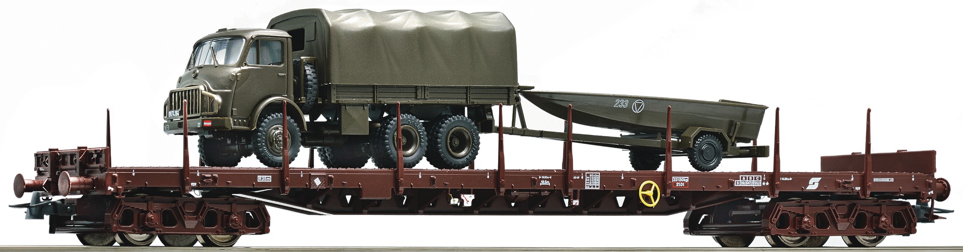 67266: 4 AXLE FLAT CAR WITH MILITARY VEHICLES OF AUSTRIAN ARMY