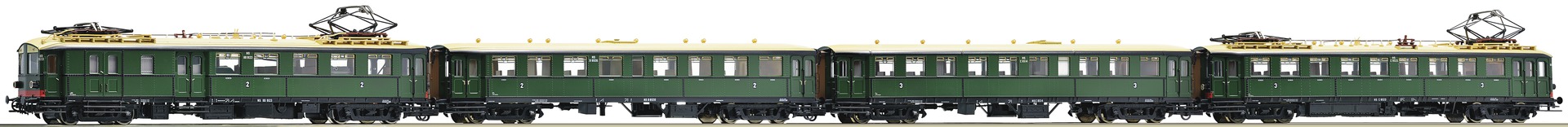 Operation condition: around 1945. With inscriptions and colours true to the original. Etched plates, limited edition, in exclusive special packaging. Model with interior that is rich in detailing. Electric interface for multiple units according to NEM 652 standards. Engine with mass flywheel. Drive on four axes, two traction tires. Light changeover from white to red.