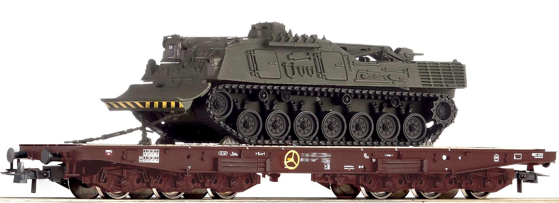 66496: 6 AXLE FLAT CAR LOADED WITH ARMORED RECOVERY VEHICLE OF ITALIAN ARMY
