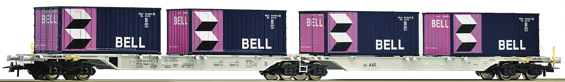 Articulated Flat car of AAE loaded with 4 containers BELL