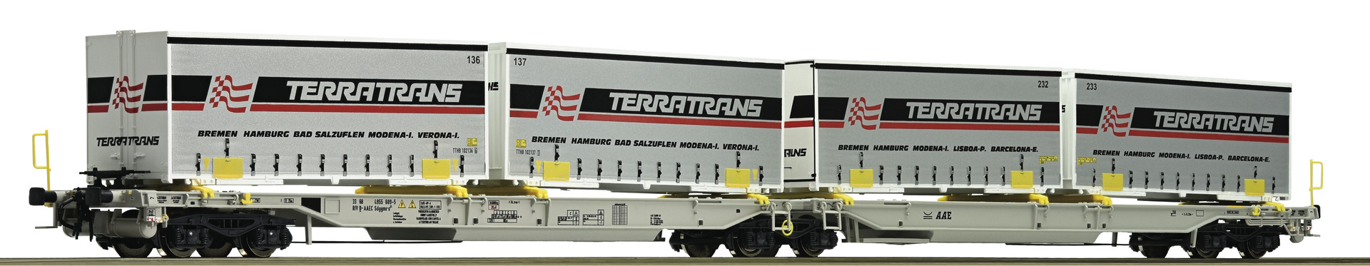 Articulated intermodal car of AAE with containers