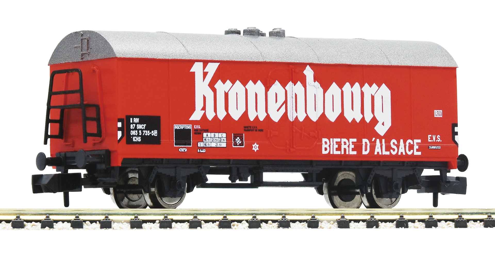 Coupler pocket according to NEM 355 standards and close coupling mechanism. Prototype: The company Kronenbourg is the largest brewery of France. It has its head office in the Strasbourg city district of the of Cronenbourg, which is also the namesake of the company. Today, all beer brewing processes are carried out in Obernai in Alsace.