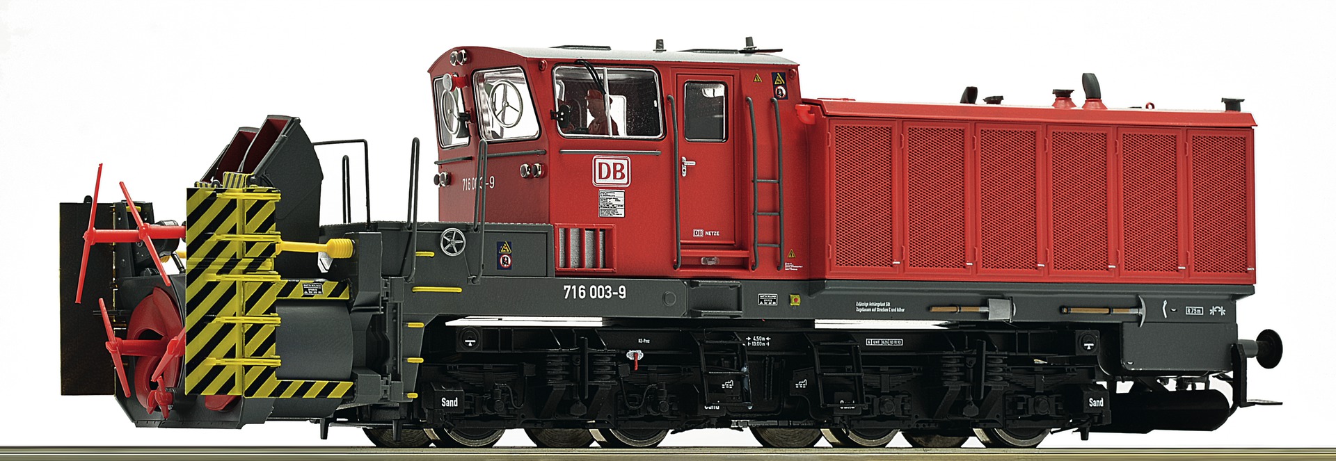 Self propelled snow blower Beilhack of the Deutsche Bahn AG. Elaborately designed model with many digitally switchable functions: blower unit can be lifted and lowered, self rotating blower wheels, entire vehicle platform can be turned 180 degrees, LED lighting, equipped with sound from factory.