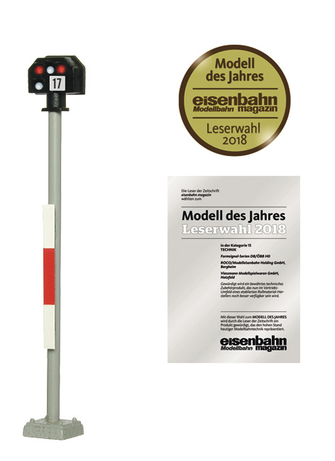 Signal in standard construction, with filigree brass mast, authentic varnishing and patented base socket for easy mounting. With each 2 red and white LEDs, maintenance free. Signal pictures Sh0 and Sh1