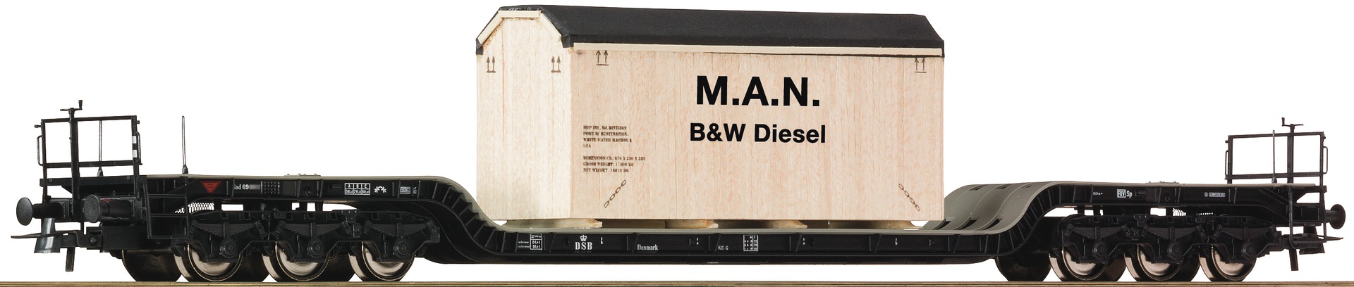 Depressed center Flat car loaded with crate