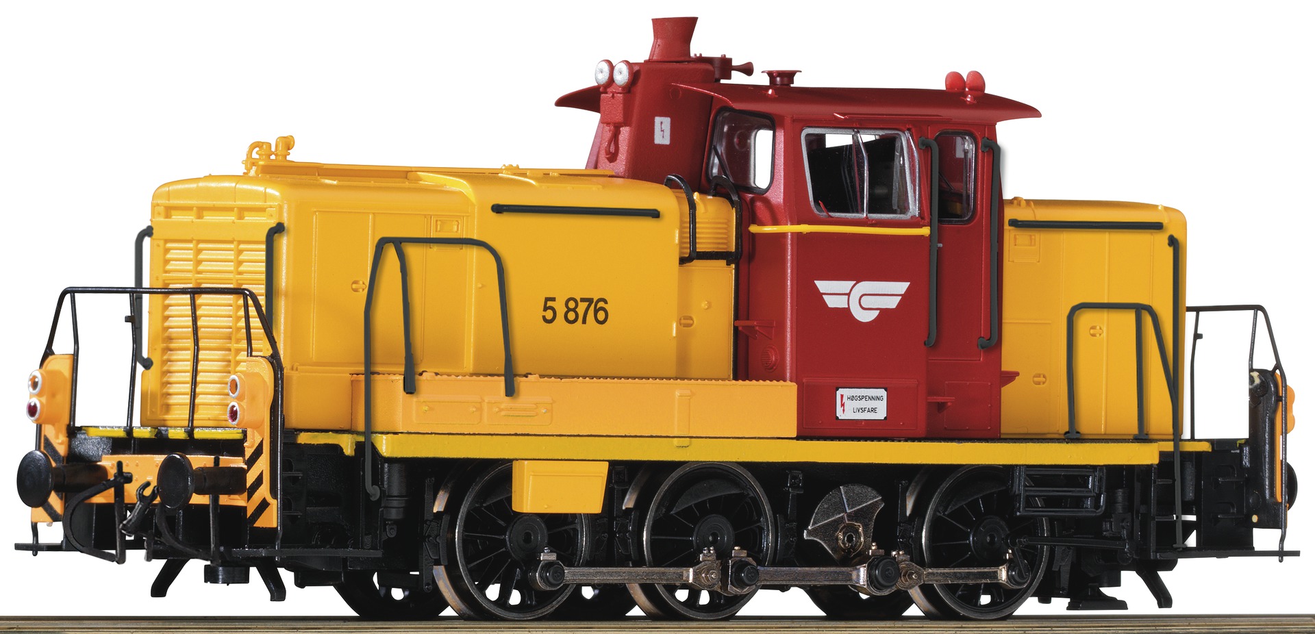 Motor with flywheel. Drive on all three axes. Two traction tyres. Interface according to NEM 652 standards for the adaptation of digital decoders. Equipped with coupler pocket according to NEM 362 standards and close coupling mechanism. Triple headlight that changes with the direction of travel.