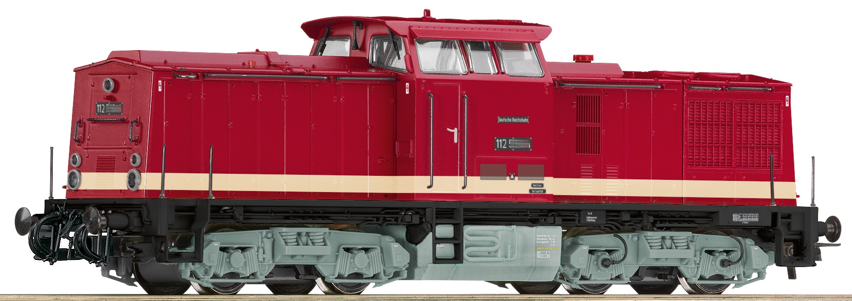 Motor with flywheel. Drive on all four axles, two of them have traction tyres. Interface according to NEM 652 standards for the adaptation of digital decoders. White/red triple LED headlights that change with the direction of travel. Coupler pocket according to NEM 362 standards and close coupling mechanism.