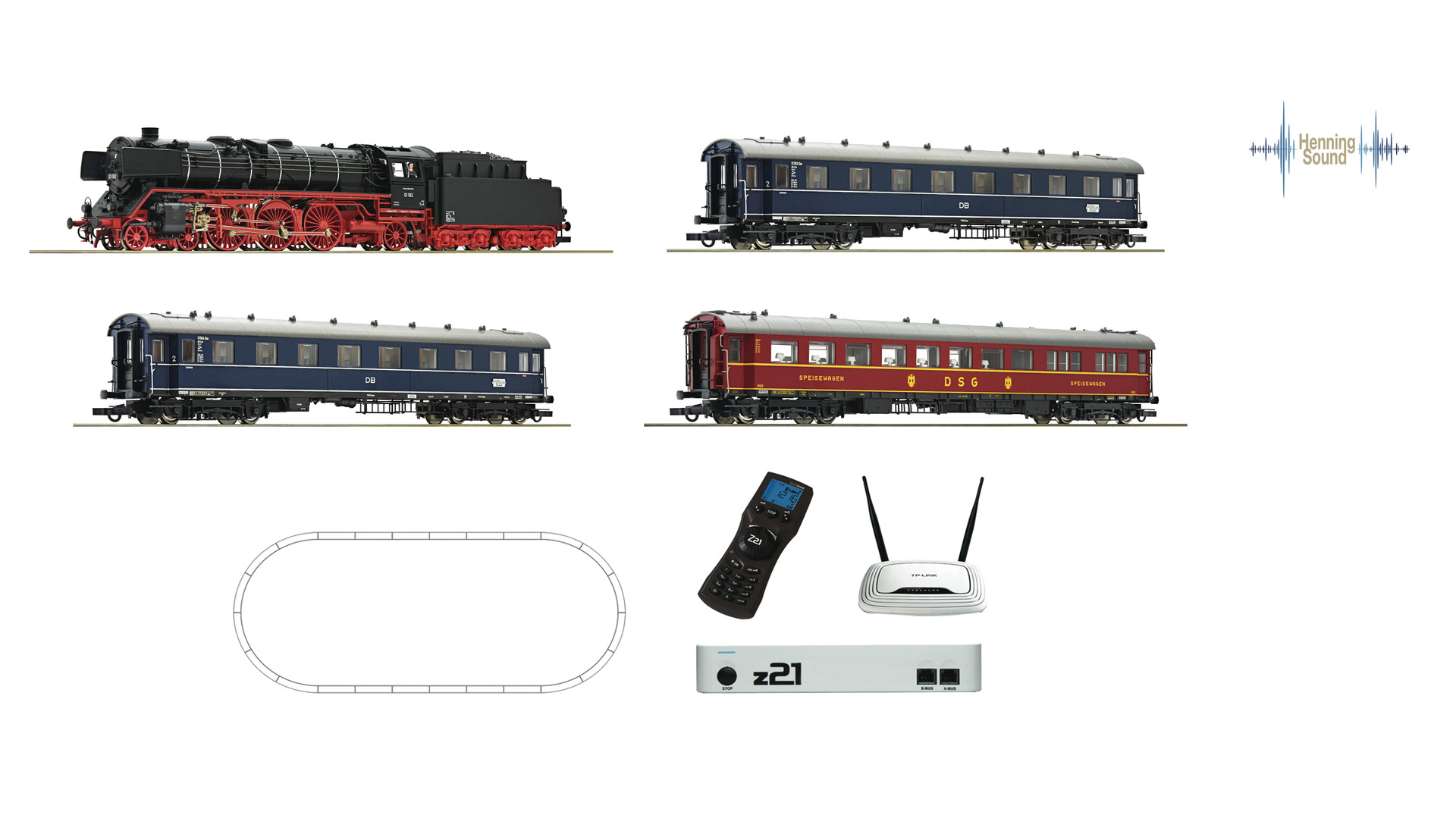 Digital starter set z21: Steam locomotive BR 01 (with Sound) and F-train Gluckauf, DB