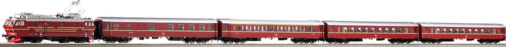 Digital starter set consists from: Electric locomotive EI 16 with 4 Express Train Passenger cars, large oval of GEO line track, digital multiMAUS, digital amplifier, 110V power supply and user manual.