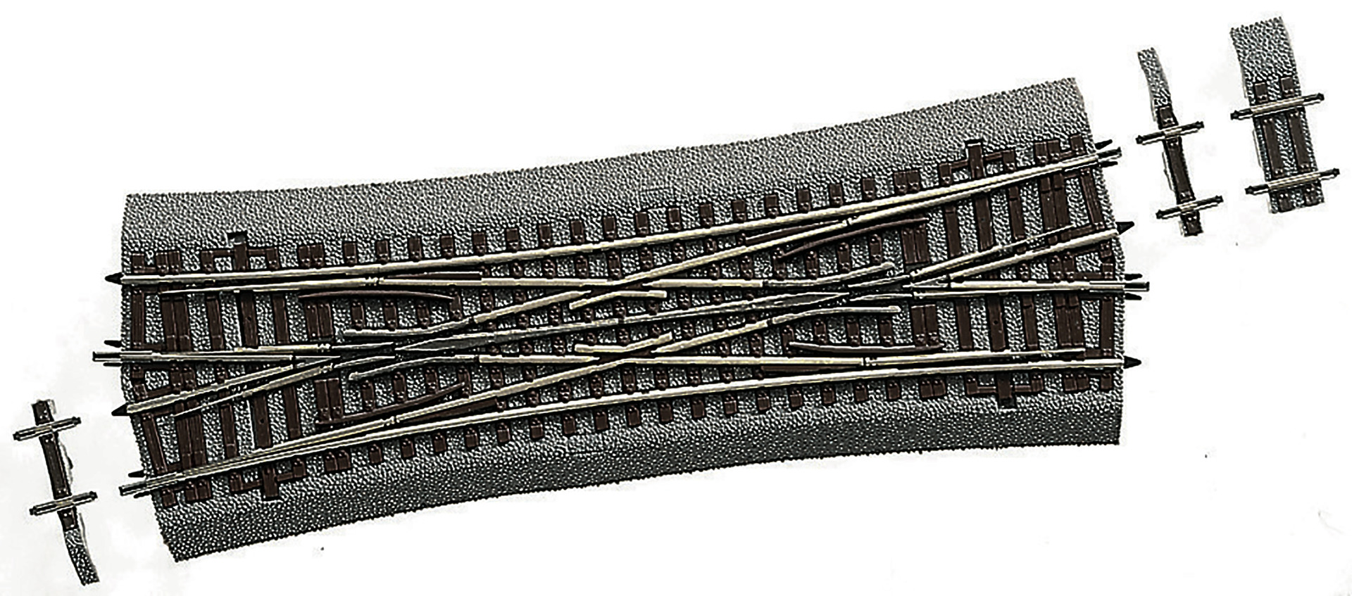 Length 230mm, crossing angle 15 deg., effective turnout radius 1050mm. Polarized ex works due to the electrical requirement of this diamond crossing with slips. For installation of diagonals, two off D4 and one off D12 are enclosed. With bedding. For Art. No. 42546: Matching electric drive 42620 (2x) or 42624 (2x).