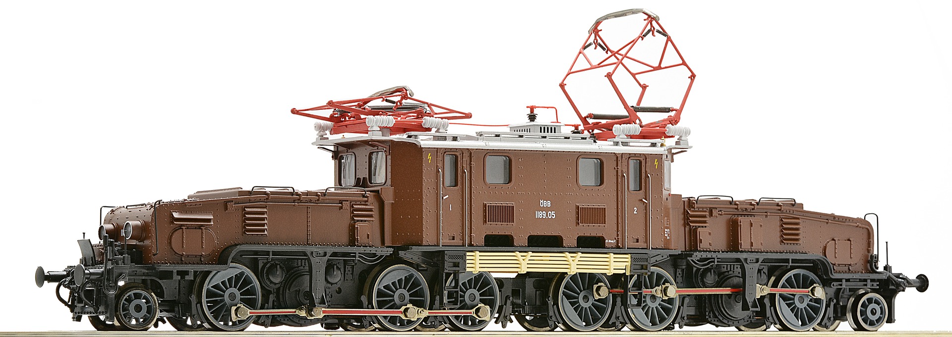 Model with six driven axes. Two axes are equipped with traction tyres. NEM 652 interface. Coupler pocket according to NEM 362 standards. Two white headlights, one red tail light. Light changeover white/red that changes with the direction of travel. Limited, numbered and certified model.