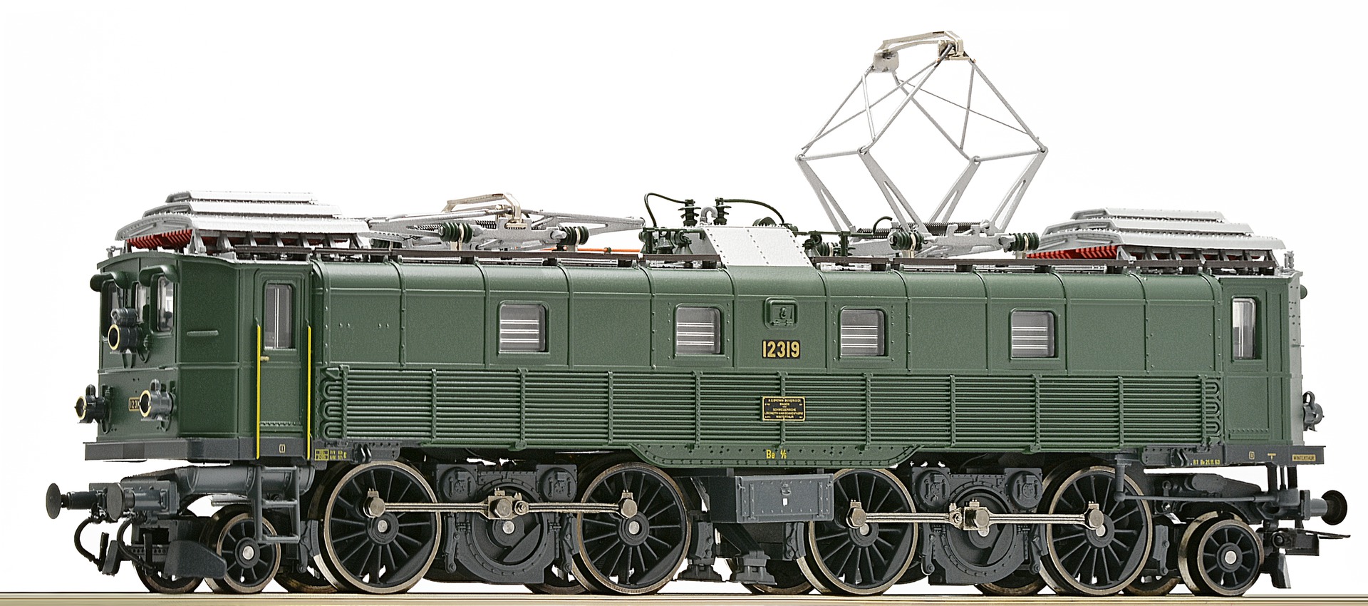 Engine with flywheel. Drive on all four axles. Two traction tyres. Interface according to NEM 652 standards for the adaptation of digital decoders. Coupler pocket according to NEM 362 standards. White/red light change. Optional current draw from catenaries.