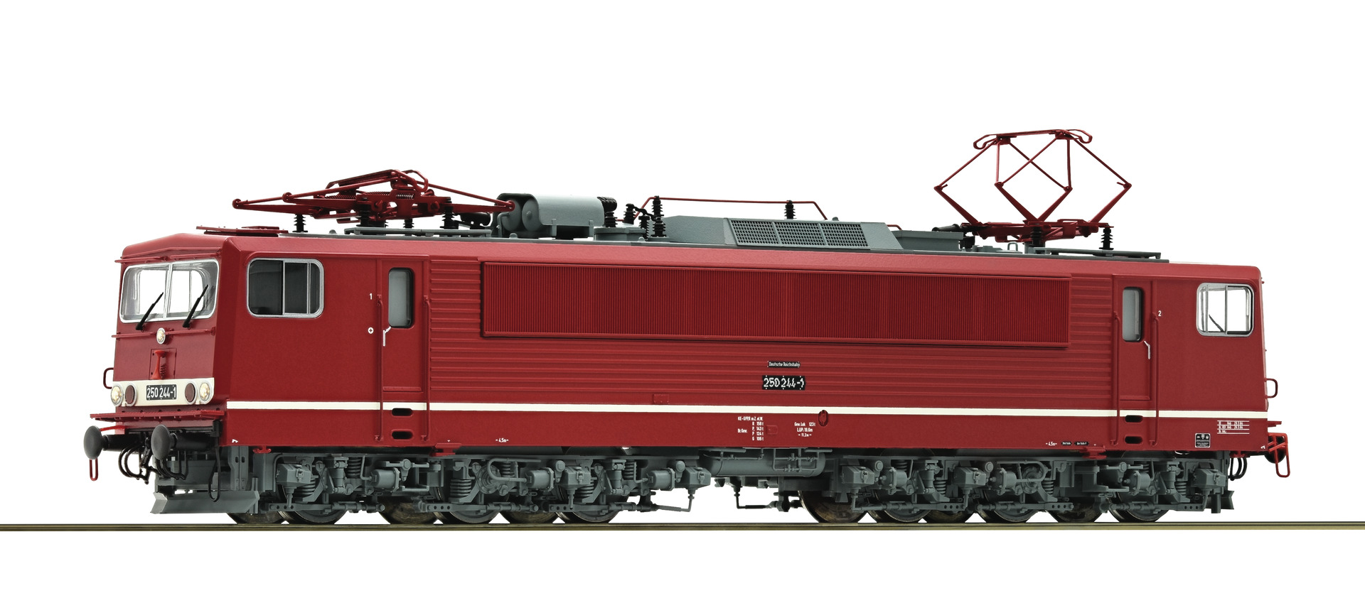 Motor with flywheel. Drive on six axles. LED-lighting white/red that change with the direction of travel.