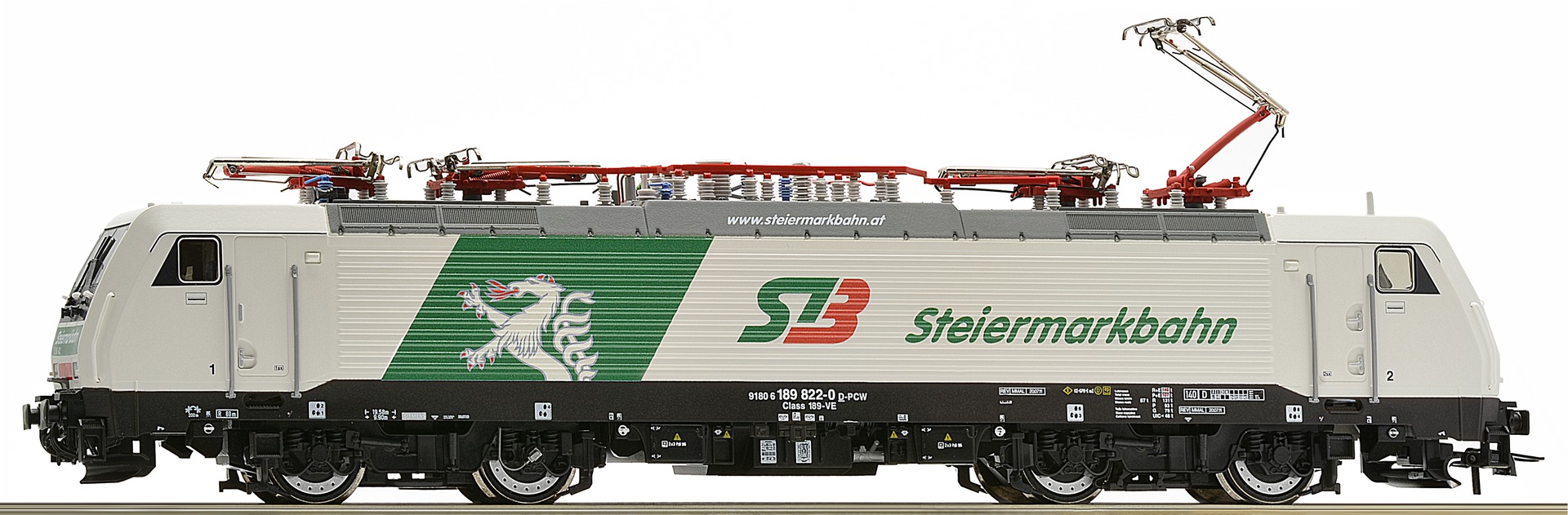 Steiermarkbahn Transport und Logistik GmbH., Epoch VI. 5-pole engine with flywheel. Drive on all four axles. 2 axles are equipped with traction tyres to increase traction power. Digital Interface according to NEM 652 standards for the adaptation of digital decoders. Coupler pockets according to NEM 362 standards. Triple headlight white and red that changes with the direction of travel.
