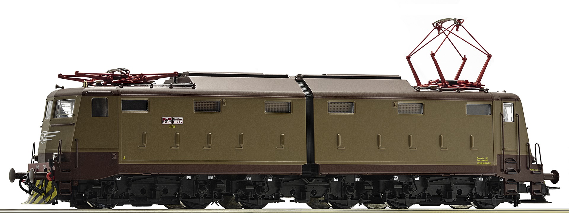 Technically redesigned model in brown livery with large FS logo and with LED lighting. The locomotive of the series E 645 and E 646 developed starting in 1958 and were based on the chassis construction of the E 636 109 - 276. The locomotives had an hourly power output of 4.320 kW and reached a top speed of 140 km/h.