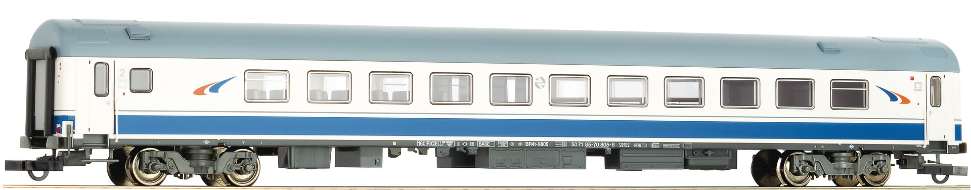 The car is used for express trains and is equipped ready to install interior lighting Coupler pocket according to NEM 362 standards and close coupling mechanism.