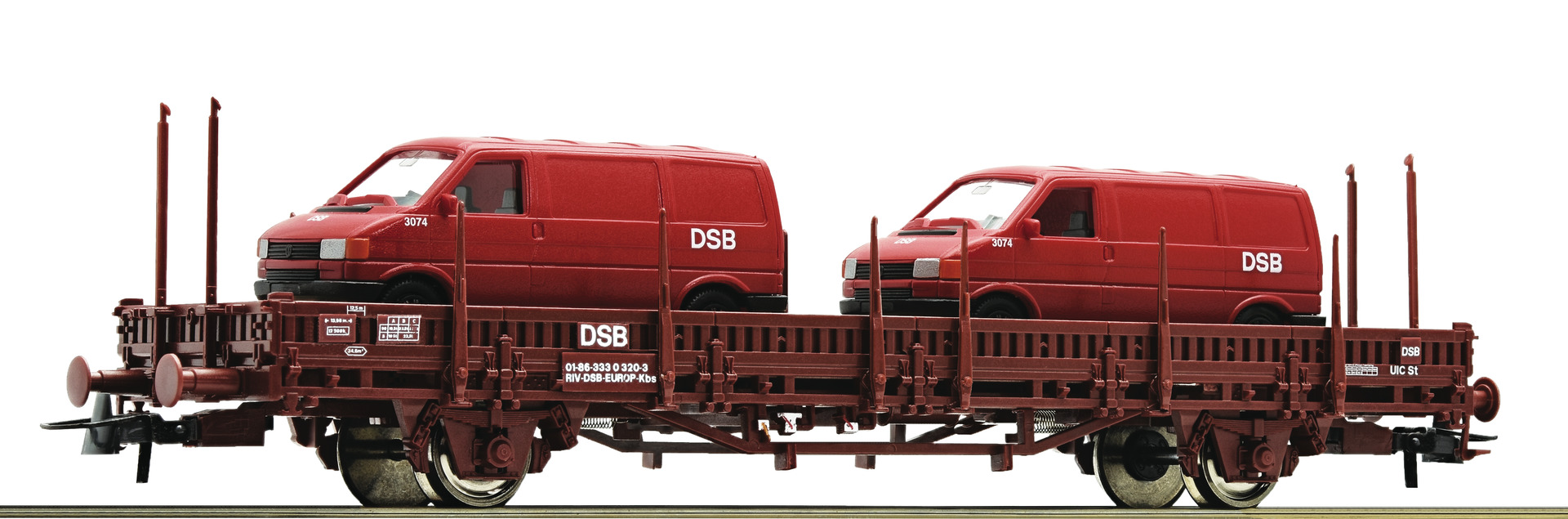 Flat car loaded with 2 WV T5 of DSB