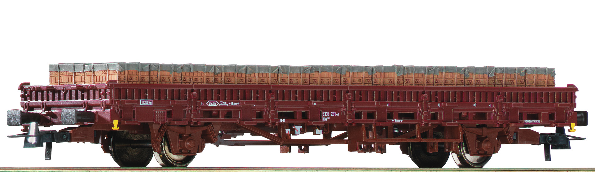 Flat car loaded with bricks