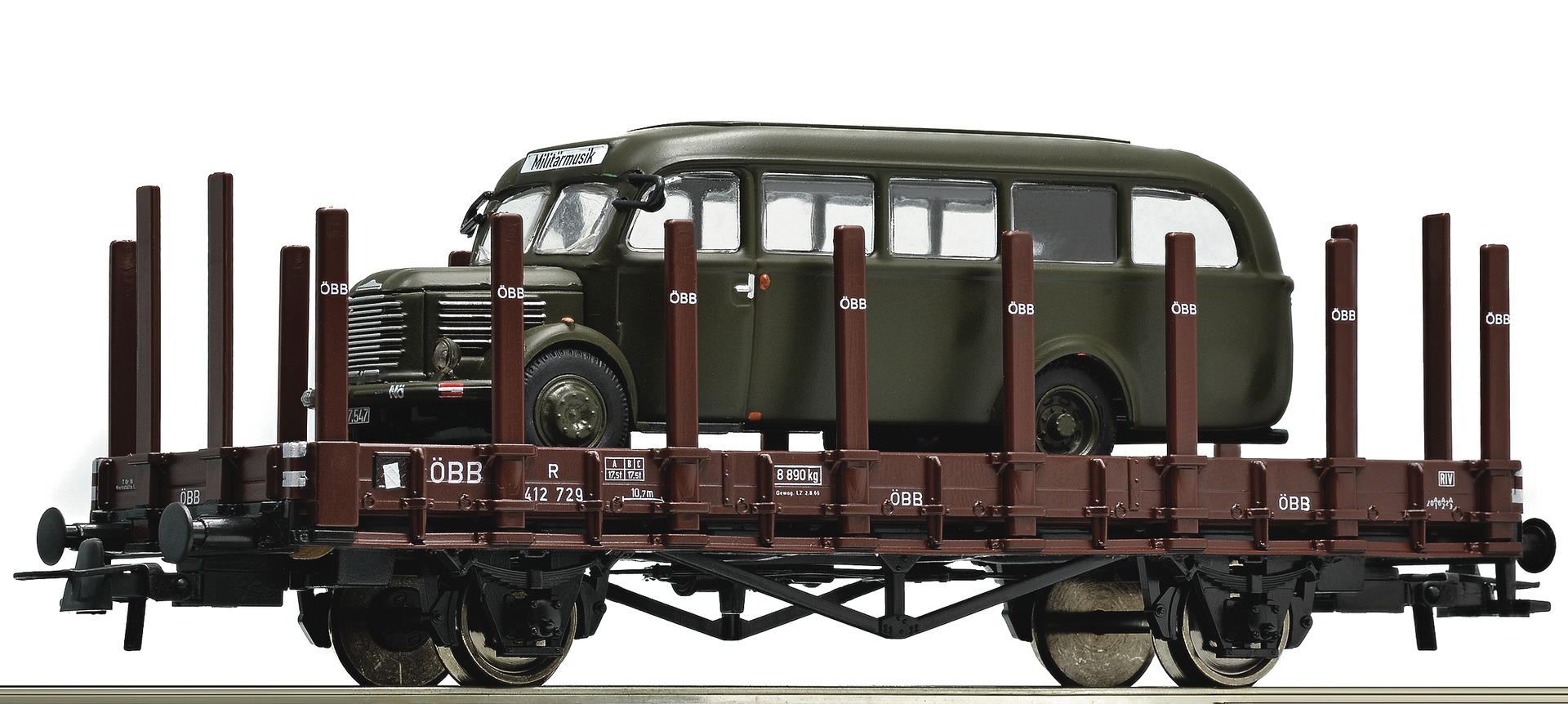 67255: FLAT CAR LOADED WITH MILITARY BUS