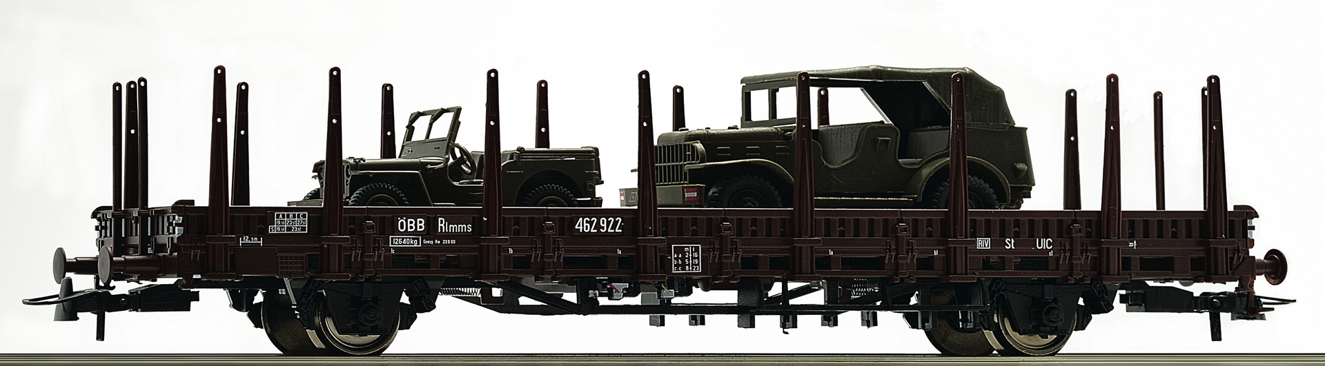 67493: FLAT CAR LOADED WITH MILITARY VEHICLES OF AUSTRIAN ARMY