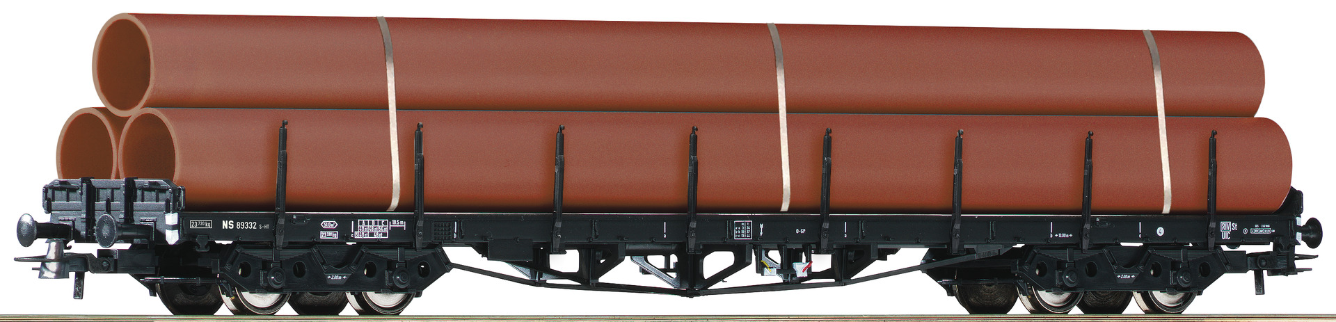 Flat car loaded with pipes