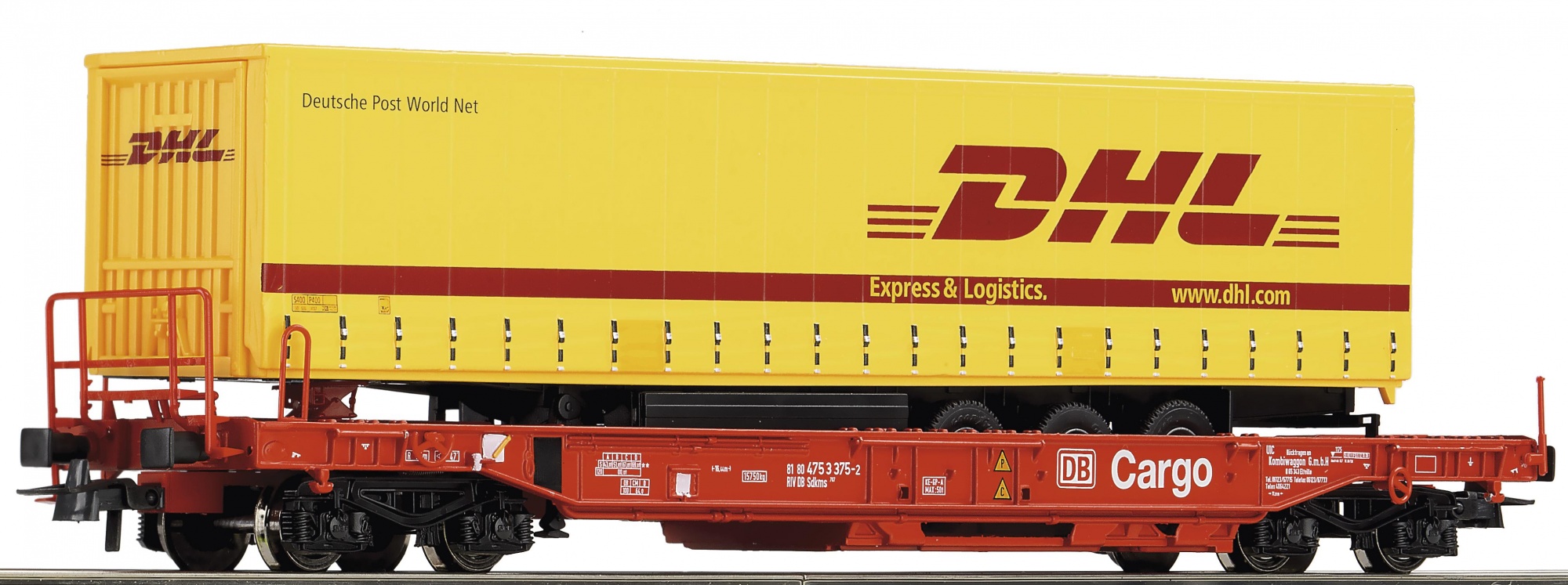 66607: FLAT CAR LOADED WITH TRAILER DHL