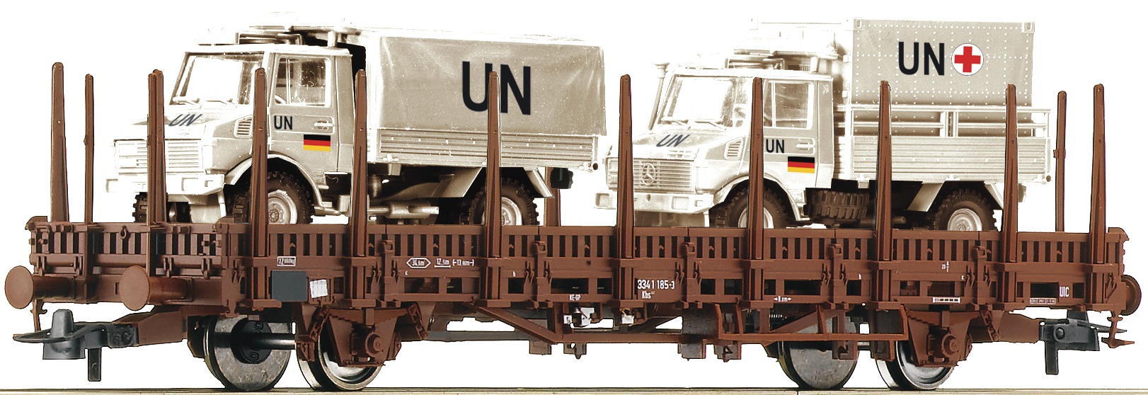 67498: FLAT CAR LOADED WITH UN UNIMOGS