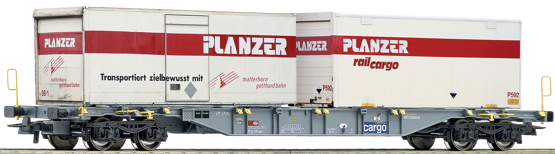 66659: FLAT CAR WITH 2 CONTAINERS MGB/PLANZER