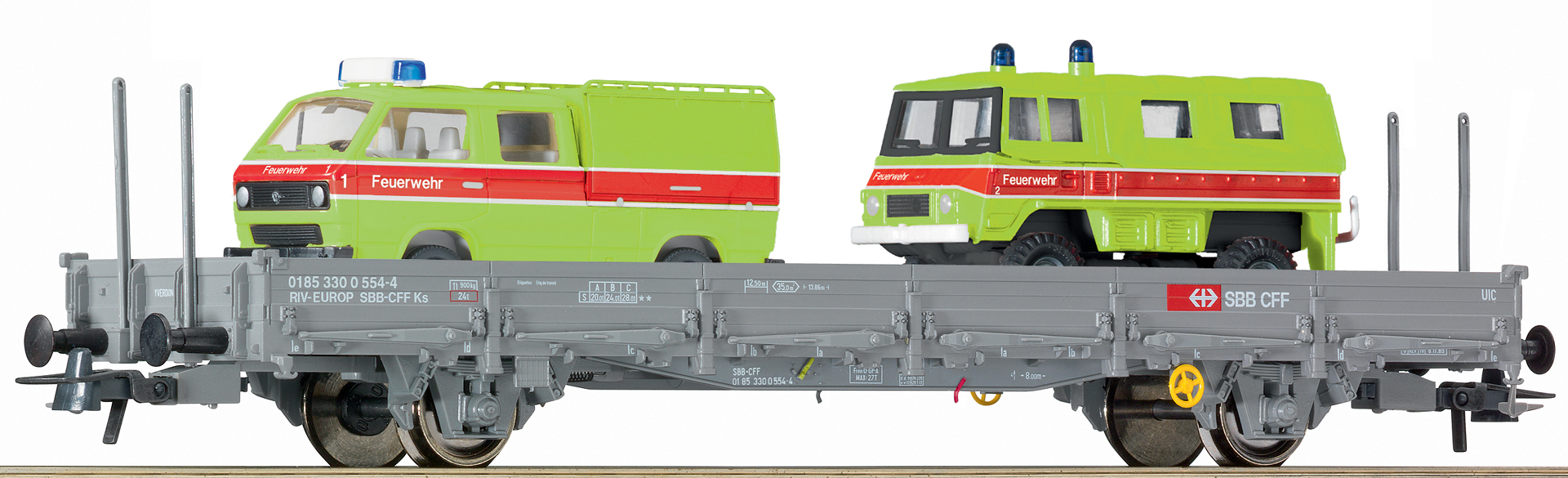 66791: FLAT CAR WITH 2 FIRE FIGHTING VEHICLES