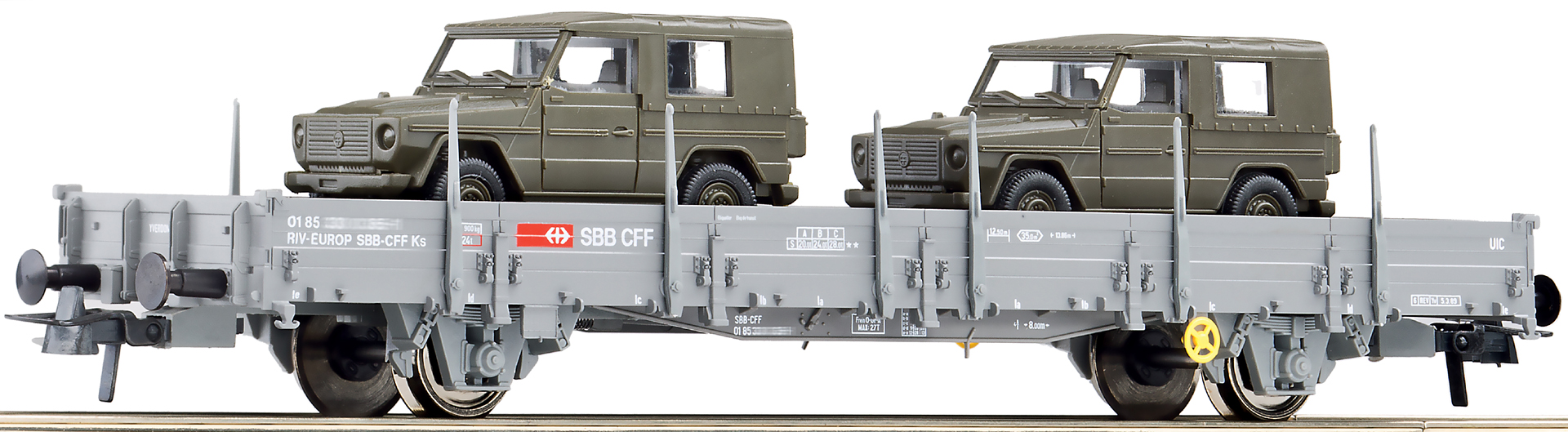 66792: FLAT CAR WITH 2 SWISS ARMY VEHICLES PUCH G