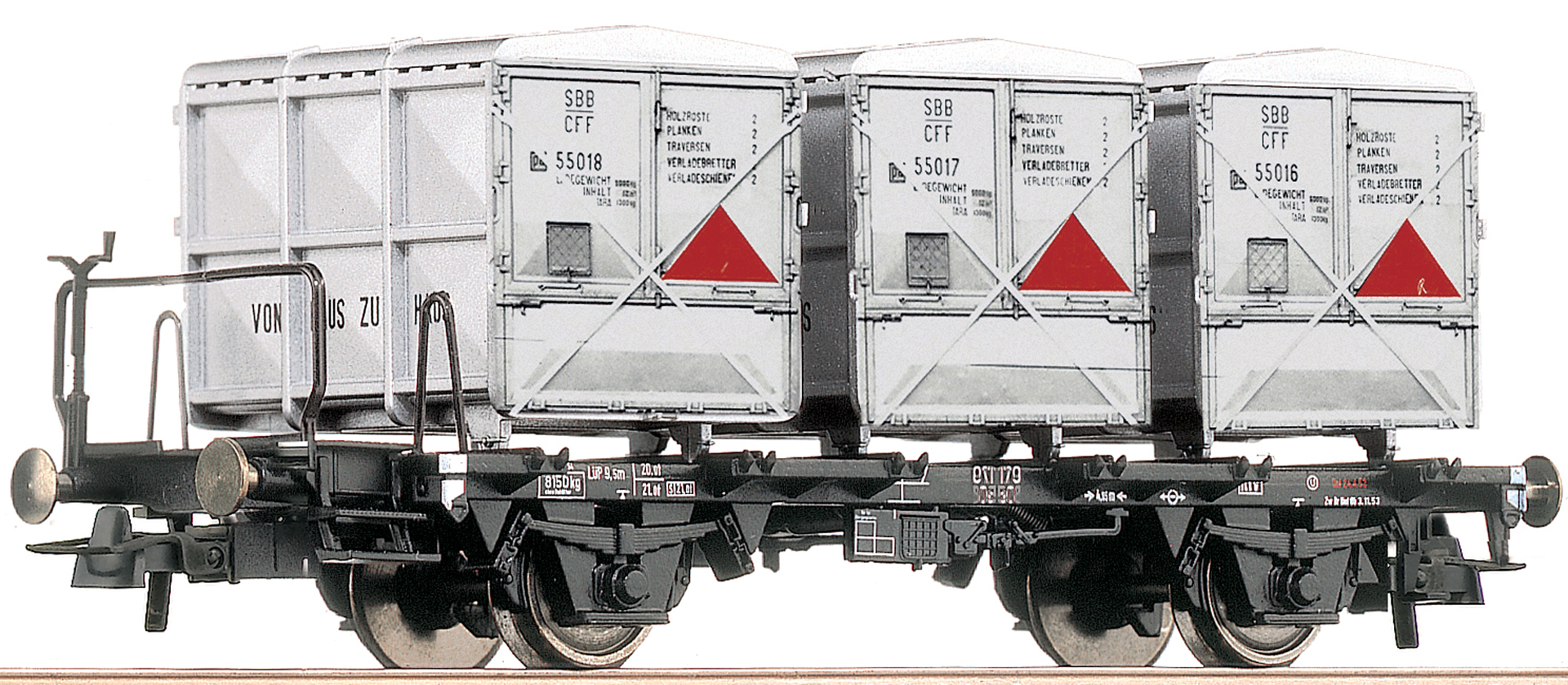 66263: FLAT CAR WITH 3 SMALL CONTAINERS