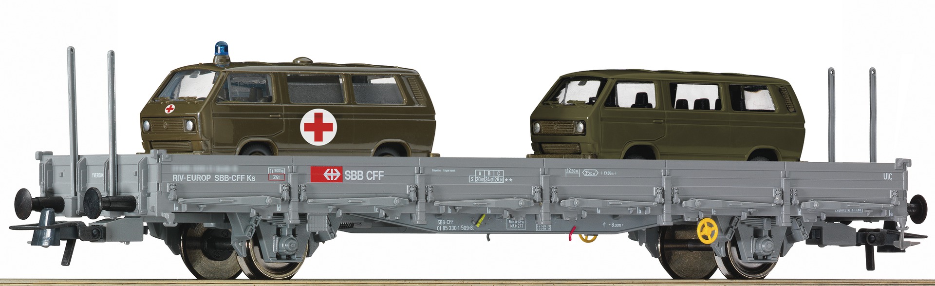 67484: FLAT CAR WITH TWO VW T3 OF SWISS ARMY