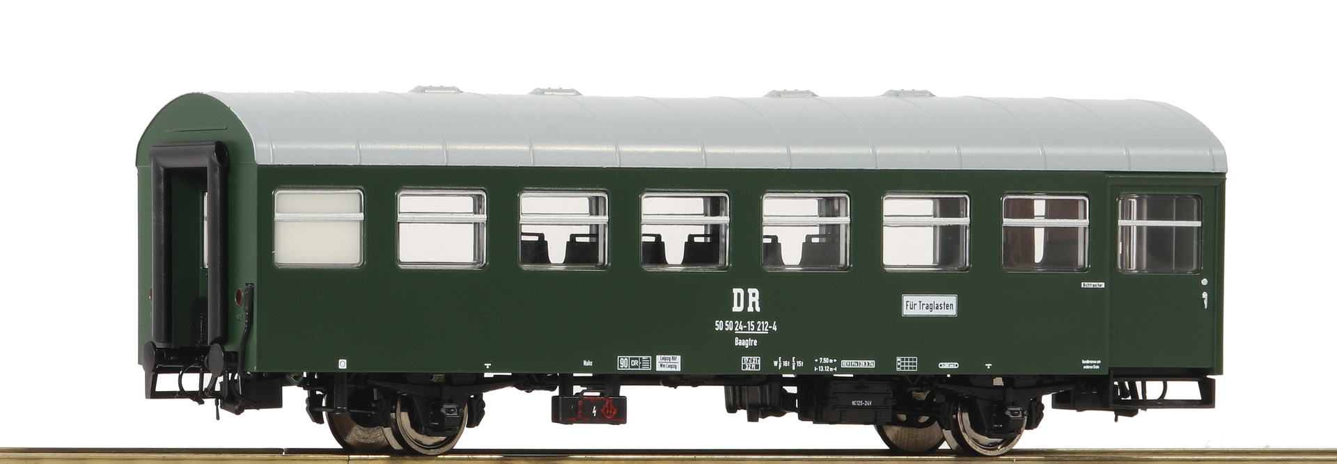 Model with interior design and ready for installation of interior lighting. Coupler pocket according to NEM 362 standards and close coupling mechanism. Version with two side doors.   2-axle chassis.