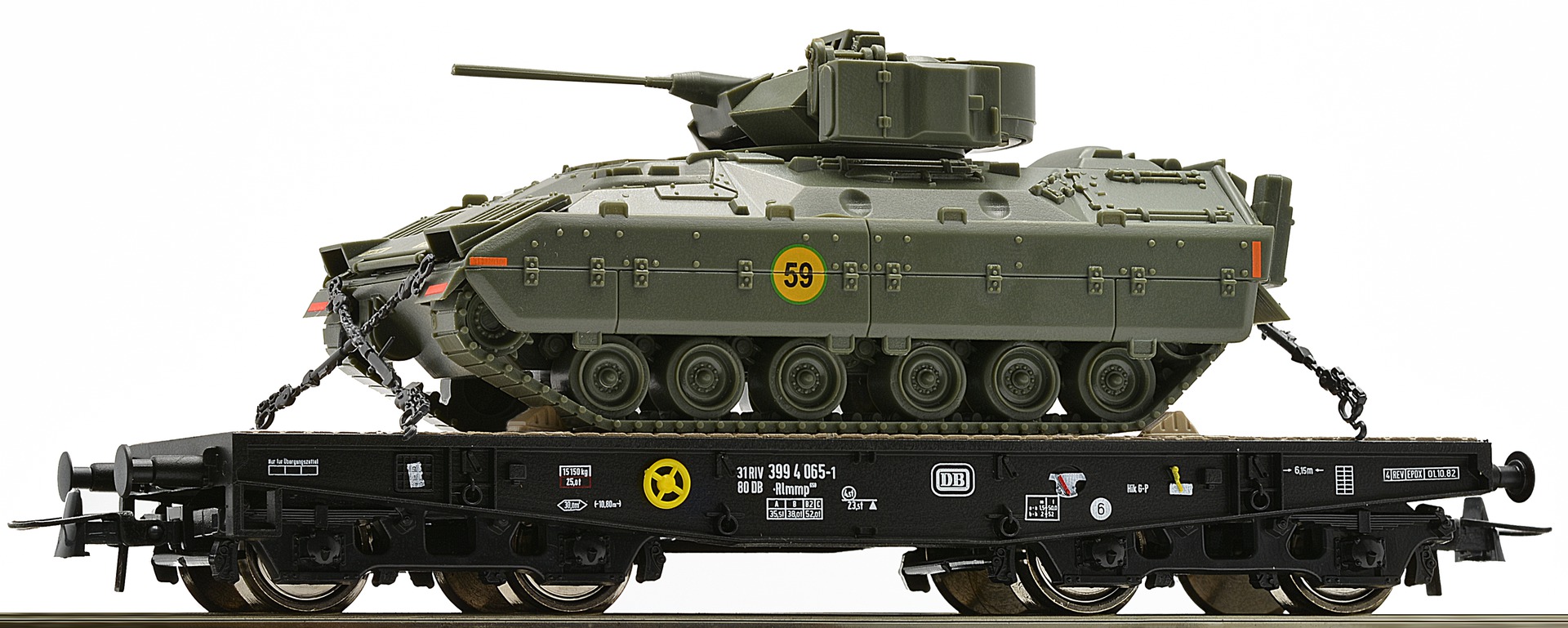 67472: HEAVY DUTY FLAT CAR LOADED WITH US ARMY M3 BRADLEY