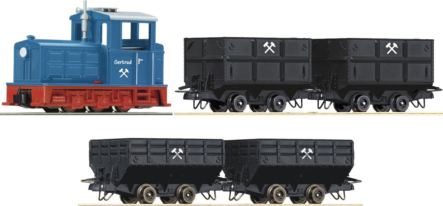 Mining train set consists from Diesel locomotive "Gertrud" and four mining cars