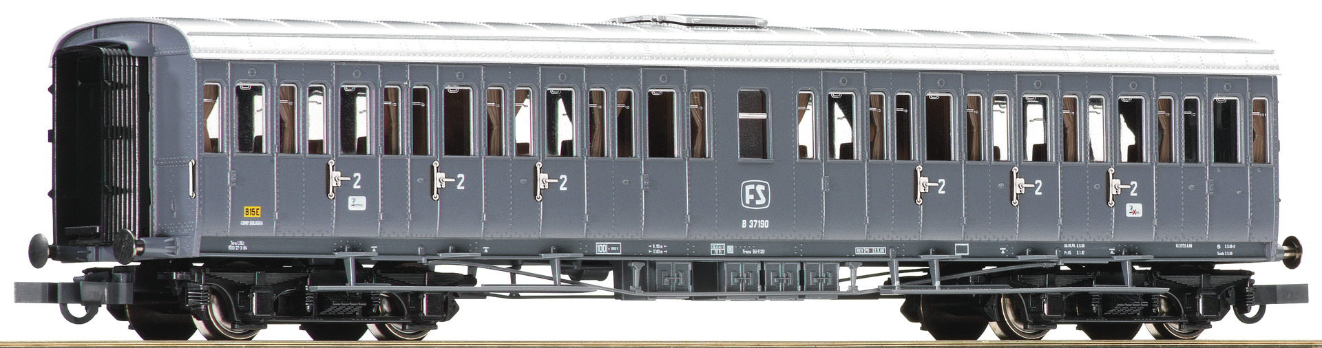 Model with interior design and equipped ready to install interior lighting. Coupler pocket according to NEM 362 standards and close coupling mechanism. Model with different running number than 64983.