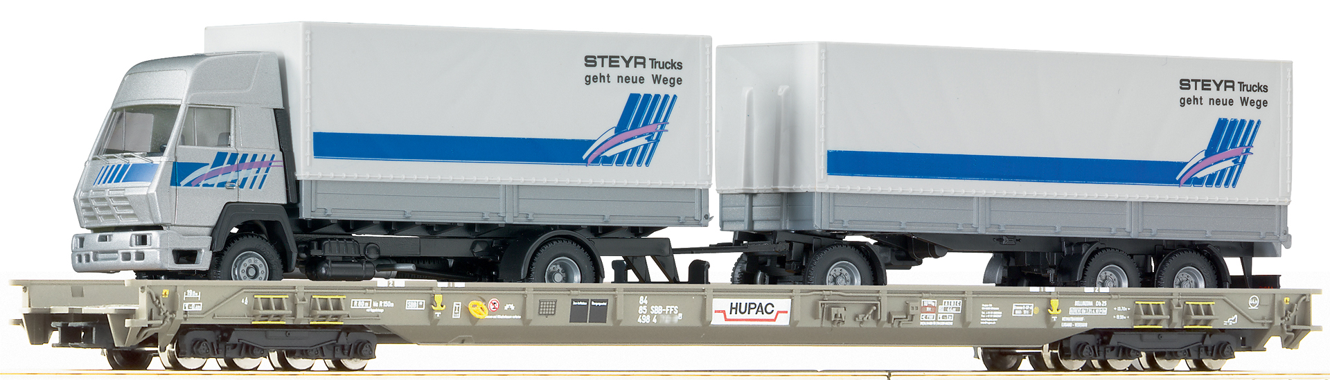 67530: "ROLLENDE AUTOBAHN" CAR WITH TRUCK AND TRAILER STEYR 91