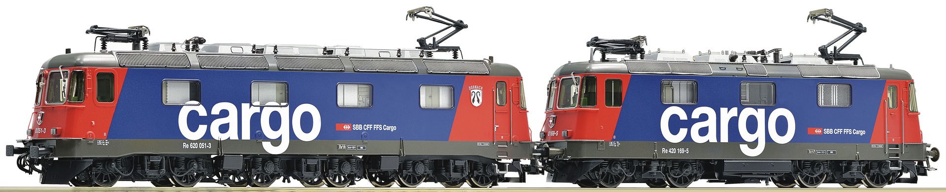 Set of 2 Electric locomotives Re 420 and Re 620 in SBB Cargo livery