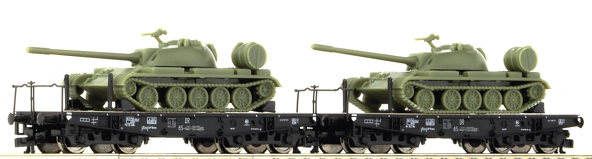 37586: SET OF 2 HEAVY DUTY FLAT CARS WITH T55 TANKS