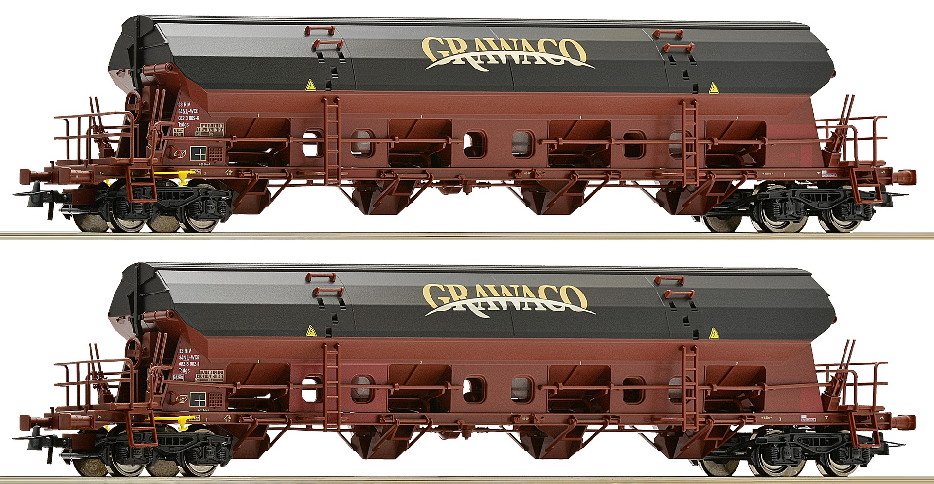 67121: SET OF 2 HOPPER CAR WITH SWING ROOF GRAWACO
