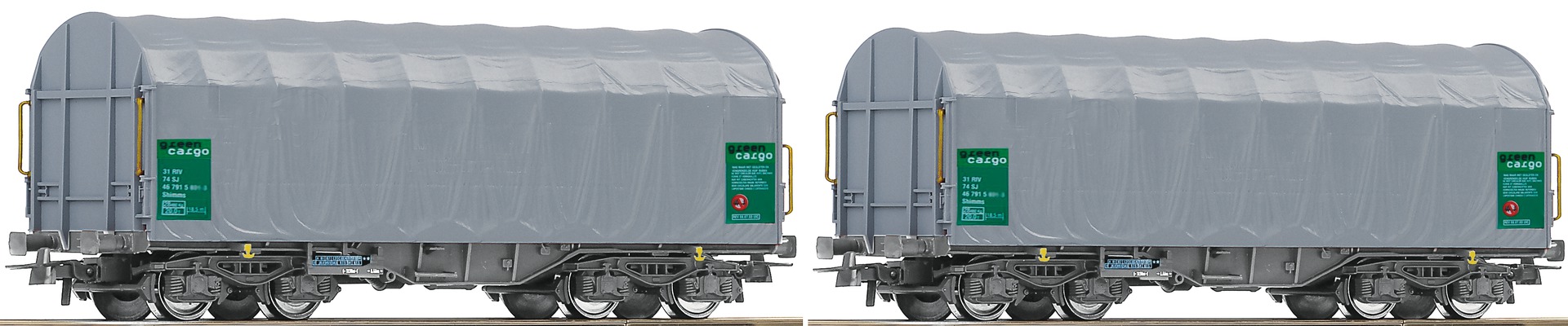 67047: SET OF 2 SLIDING TARPAULIN CARS IN GREEN CARGO LIVERY