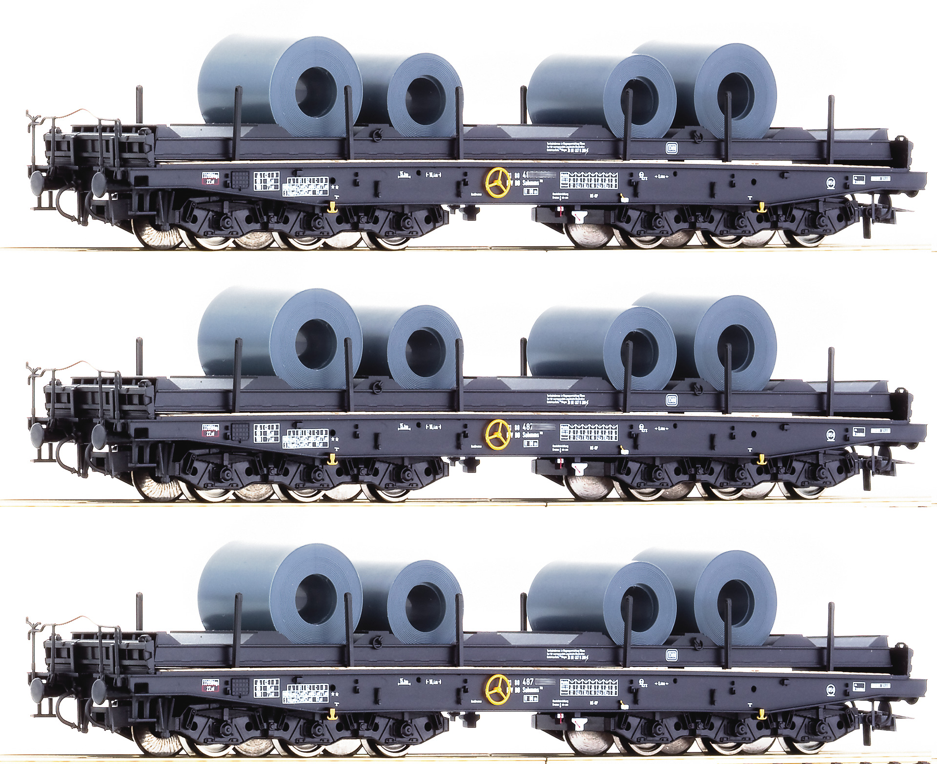 76957: SET OF 3 HEAVY DUTY FLAT CARS LOADED WITH STEEL COILS