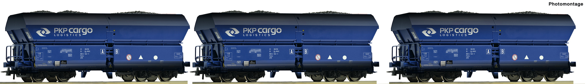 Set of 3 Self-unloading hopper cars in PKP-Cargo livery<br /><a href='images/pictures/Roco/Roco-76130.jpg' target='_blank'>Full size image</a>