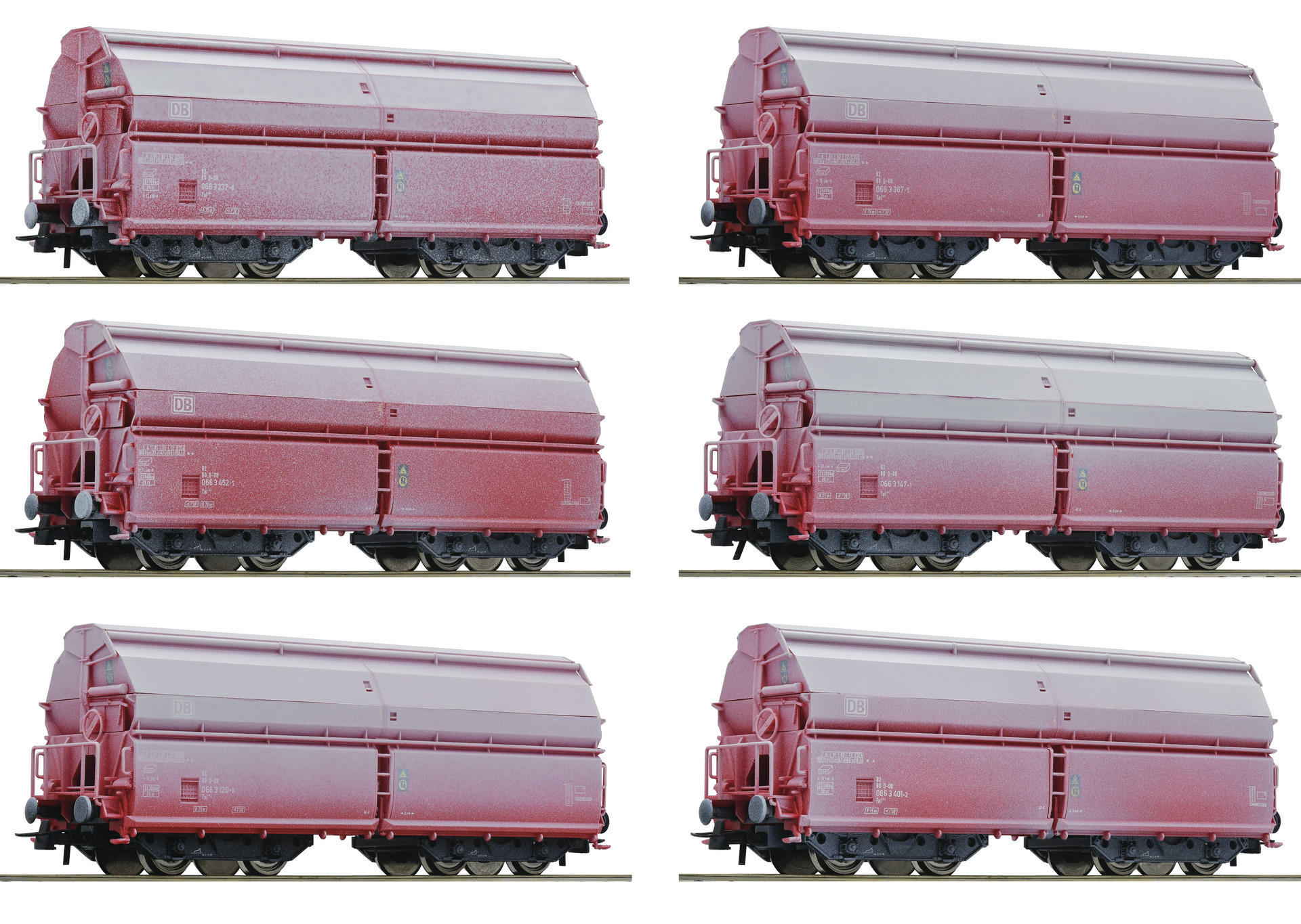 75938: SET OF 6 SWING ROOF HOPPER CARS TYPE TAL (WEATHERED)