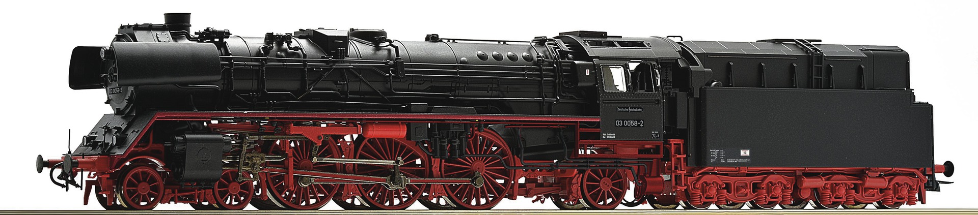 Completely new design of the BR 03.10 with new boiler and oil tender. Rich detailing on the model that has separateley attached plug-in parts. Engine with mass flywheel, LED lighting, elaborately designed wheel set with low flanges and digitally switchable functions.
