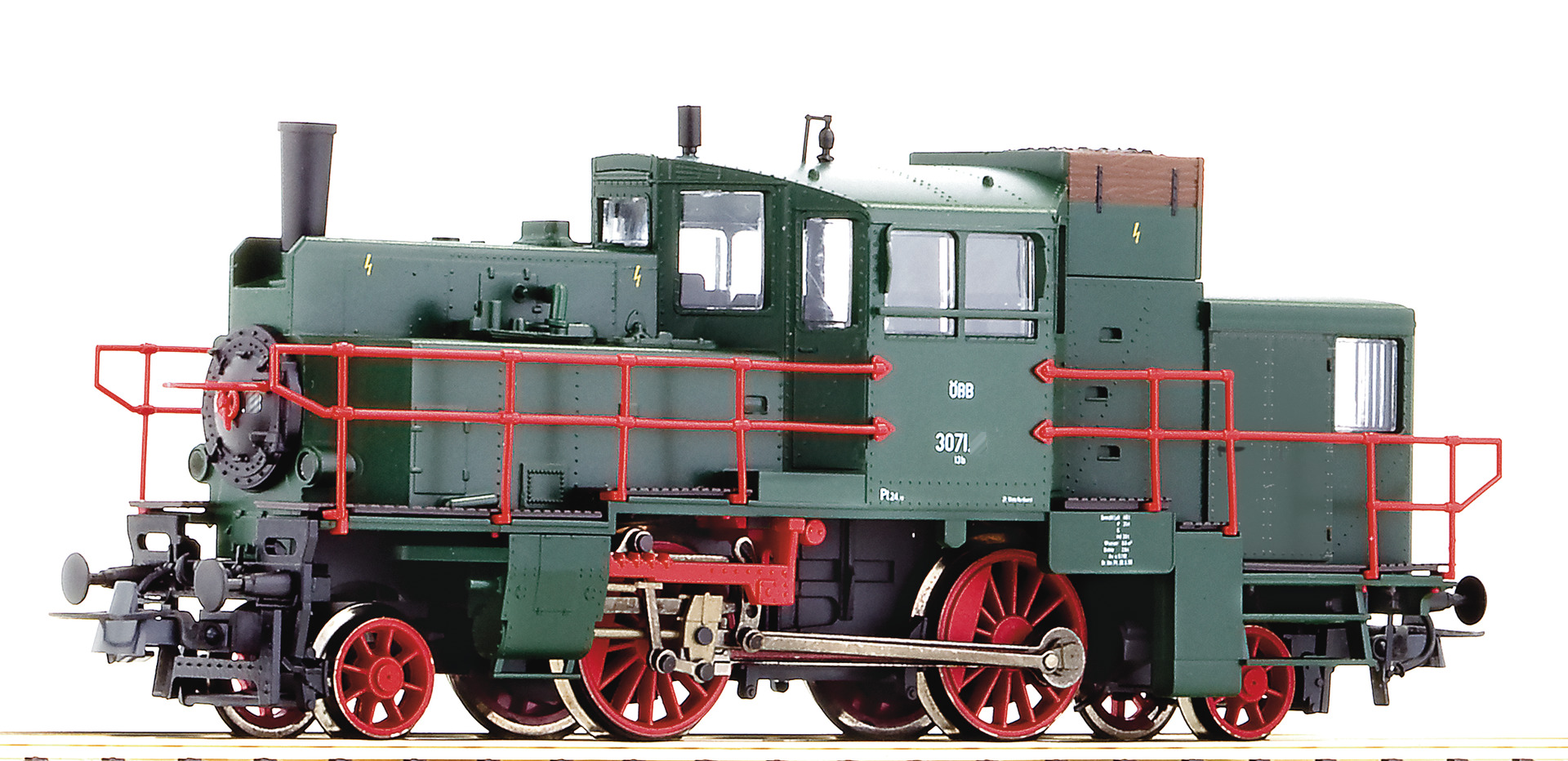 5 pole motor with flywheel. Drive on two axles. Two wheels are equipped with traction tyres to increase the traction power. Headlights that change over with the direction of travel. Interface according to NEM 652 standards for the adaptation of a digital decoder. Coupler pocket according to NEM 362 standards and close coupling mechanism.
