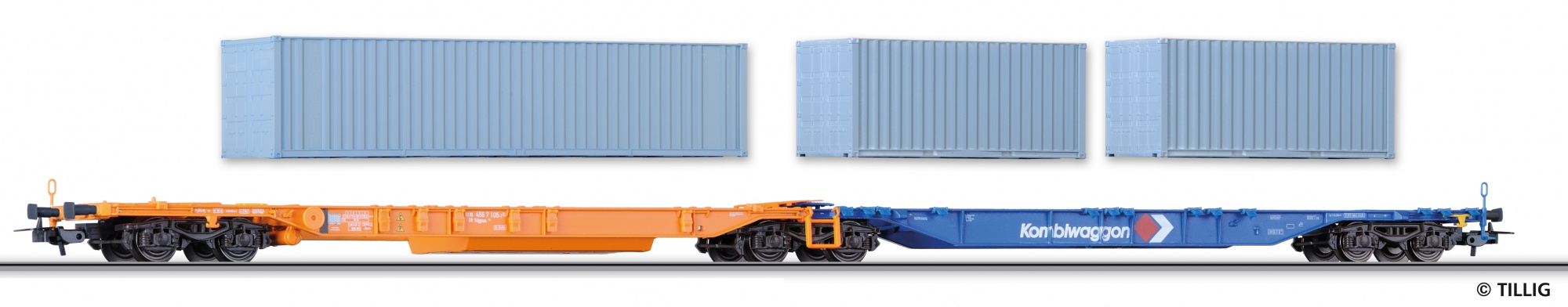 Articulated container car Sdggmrs 744 "combiwaggon" with 3 containers