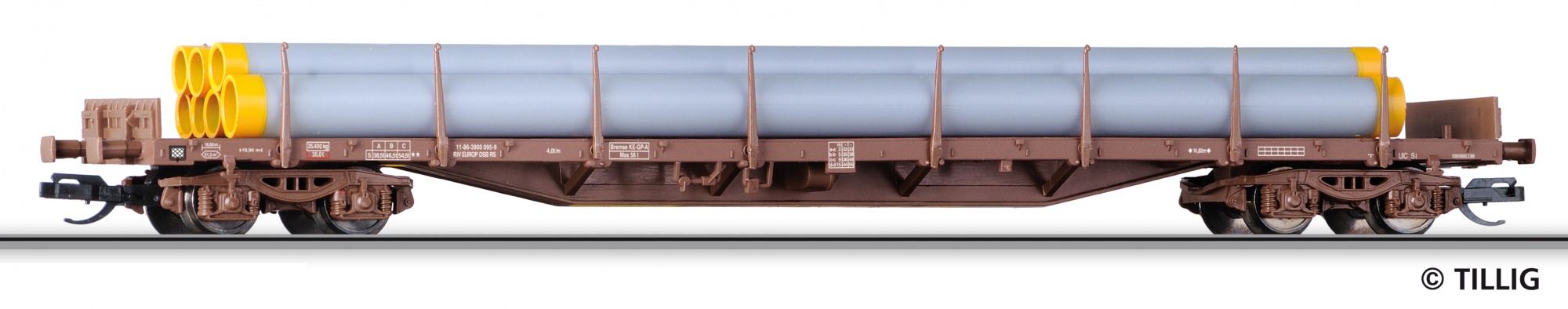 4 axle Flat car loaded with pipes