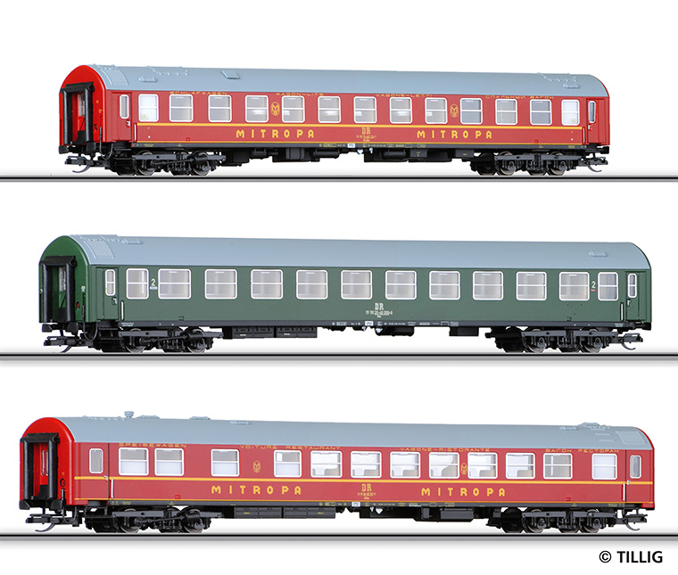 Set consists from Passenger car 2nd class, Sleeping car MITROPA and Restaurant car MITROPA